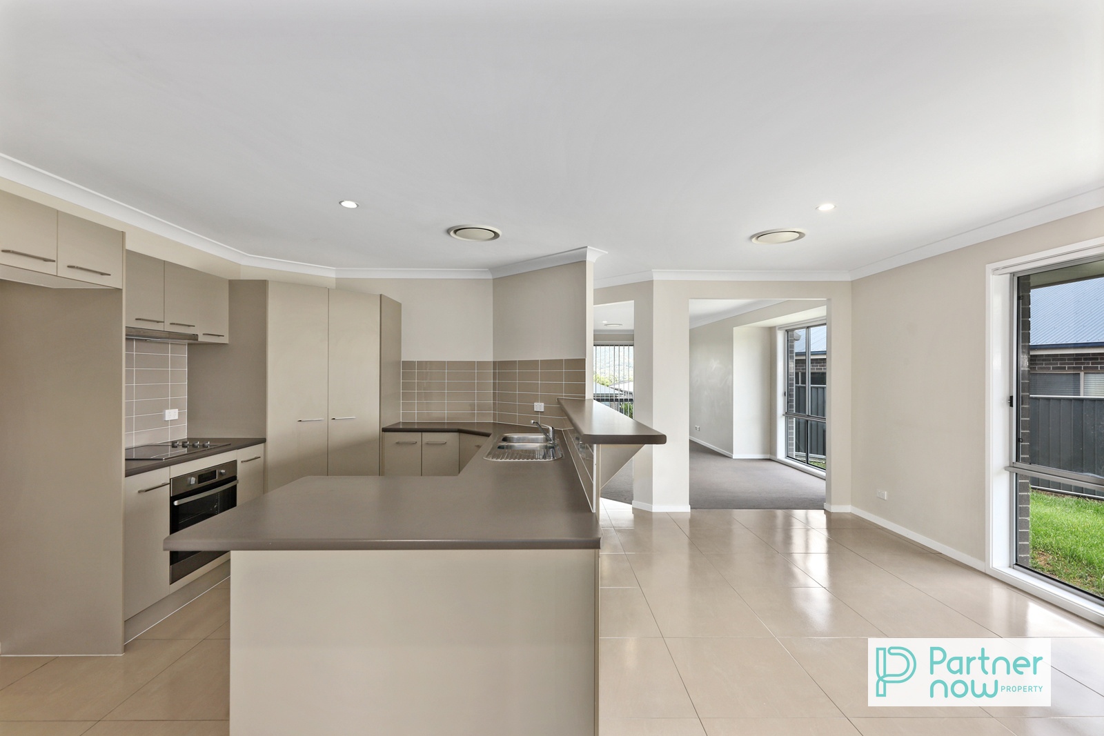 At the heart of the home sits a well-appointed modern kitchen, complete with abundant bench space, breakfast bar, and quality appliances. Its smart layout ensures effortless meal preparation while remaining connected to the living areas.