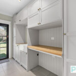 The extra-large main bedroom, privately set apart from the other rooms, offers the ultimate parents’ retreat with a walk-in robe and an ensuite with separate shower and spa bath. Four additional bedrooms include built-ins, plus a sixth bedroom/study for flexibility.